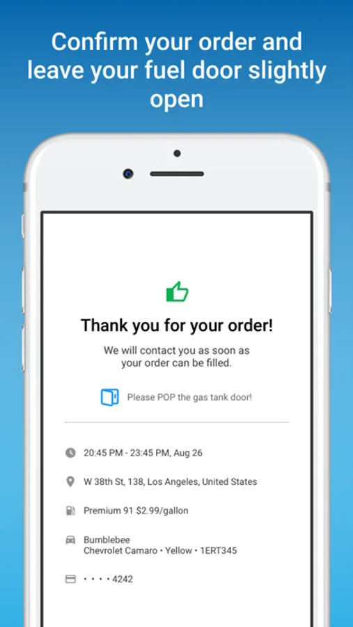 Simply request fuel, leave your gas door open, then go about your day and come back we filled-up.