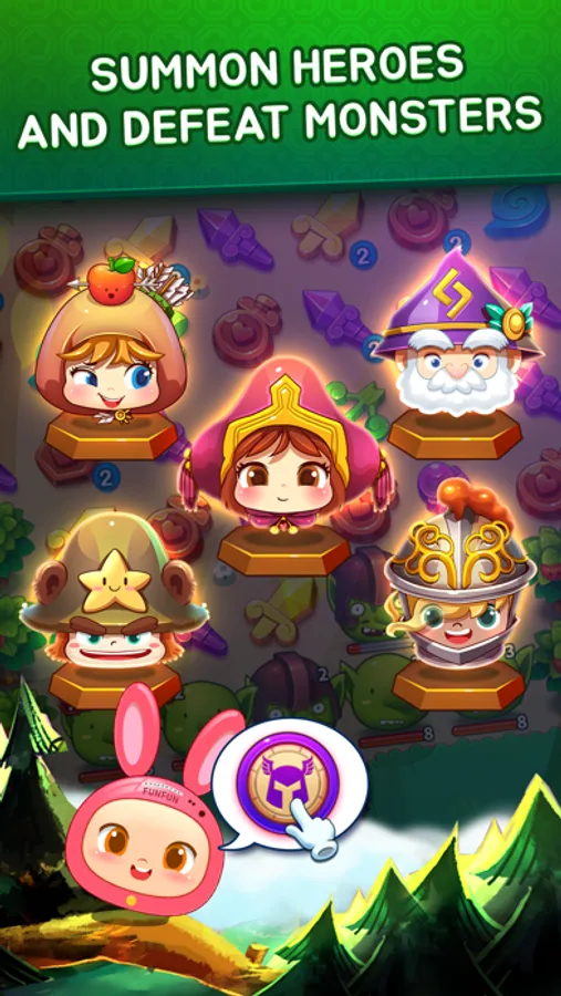 Let’s begin the amazing adventure in Fantasia, the magic world, with Fun-fun as your guide and defeat the invading monsters by matching 3 puzzles!
