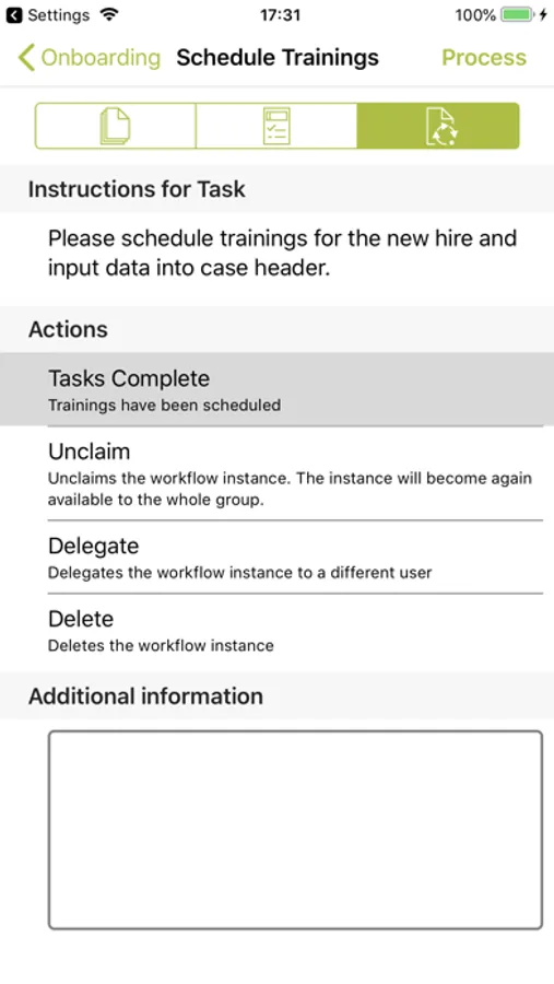 • Receive notifications if a Therefore™ workflow instance is assigned to the user that is currently logged in or to a group the user belongs to.