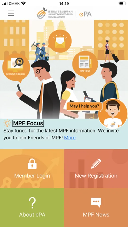 Hong Kong Identity Card holders can register for the ePA service. Apart from checking your own MPF Personal Account(s), you can also access the contact information of MPF trustees, information on Fees of MPF Funds and browsing latest MPF news from MPFA, for your easy management of your MPF accounts.