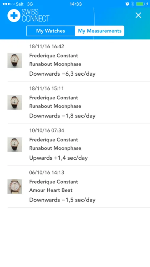 SwissConnect Analytics measures the accuracy of your mechanical watch. It measures the precision of mechanical watches, with an accuracy of at least ±0.2s/day.