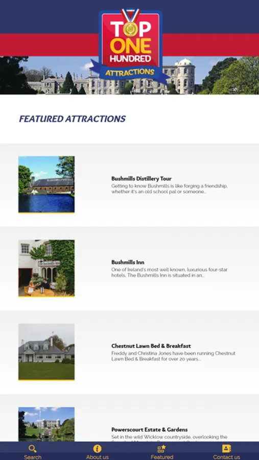 We have put together, and are continuing to put together a wide selection of accommodation providers, restaurants and top tourist attractions. From, Donegal to Dingle, Cork to the Giants Causeway, and Co. Kerry to Killarney, there is literally something for everybody no matter at what age. So at the click of a button, you could be enjoying everything from a seaweed bath in Sligo, to a boat ride on a beautiful Connemara Fjord, and more. So what are you waiting for? Download this great app to really get to know the magnificent island of Ireland!