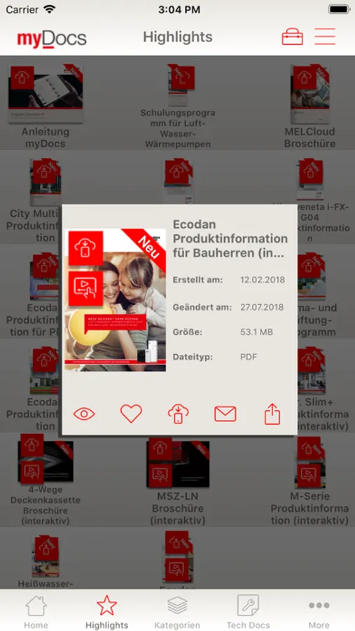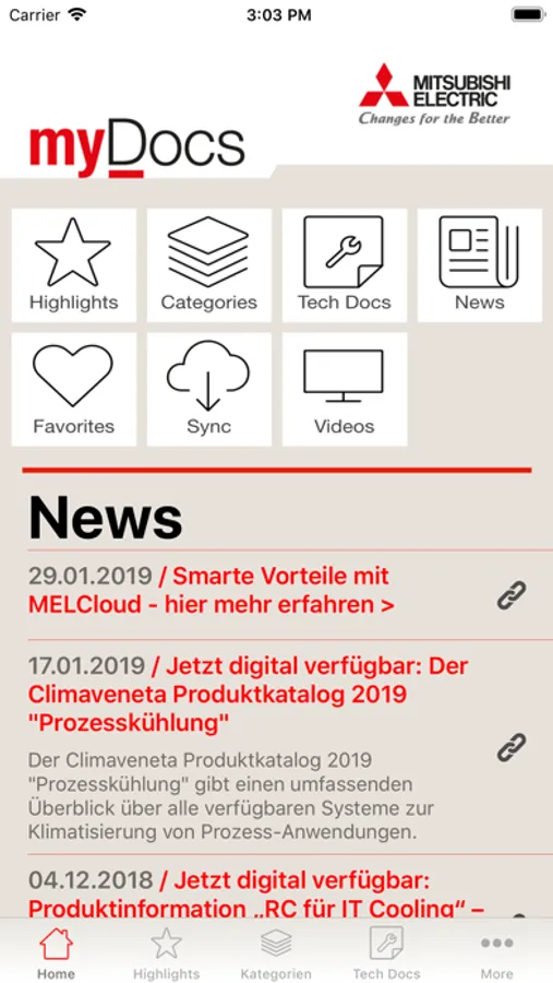 You can use myDocs to access the current range of documents from Mitsubishi Electric at any time. The interactive multimedia brochures and catalogues use integrated videos, slideshows, animated graphics and additional functions to present the entire product range, from innovative, energy-saving air conditioning and ventilation technology to heat pumps and hand dryers.
