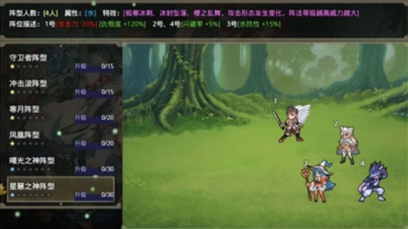 【阵型系统】对付不同的敌人需要熟练运用阵型,阵型还能提高个人能力以及技能威力