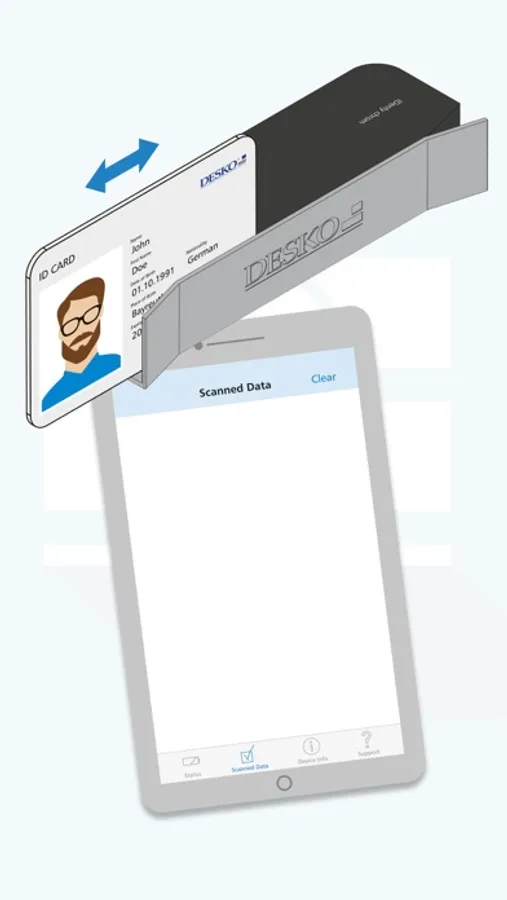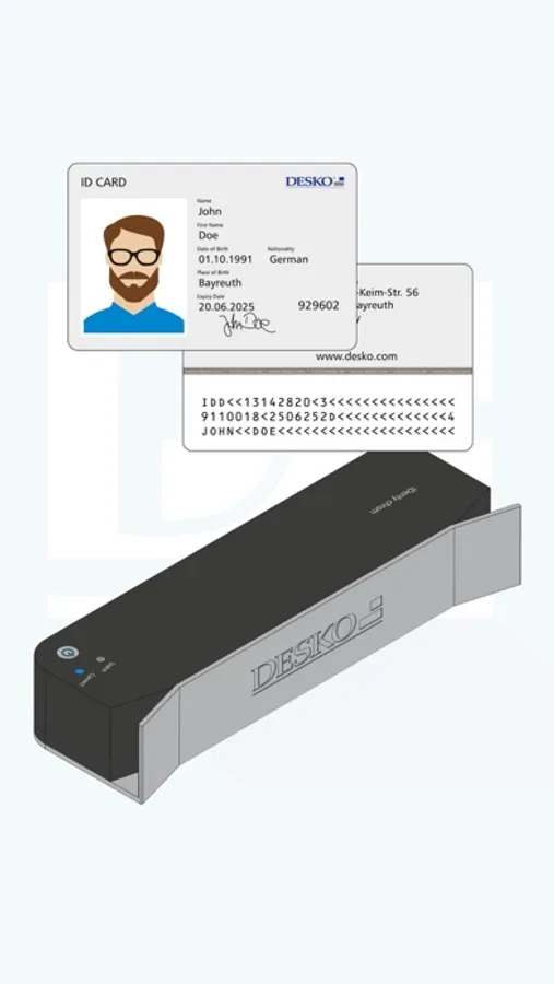Capture data from ID documents like passports, ID cards or visas. Use our DESKO devices with integrated wireless technology and transfer data into the application.