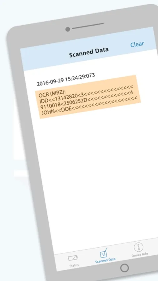 * Take the ID document you want to read and turn it so that the MRZ is on the bottom and facing towards you.