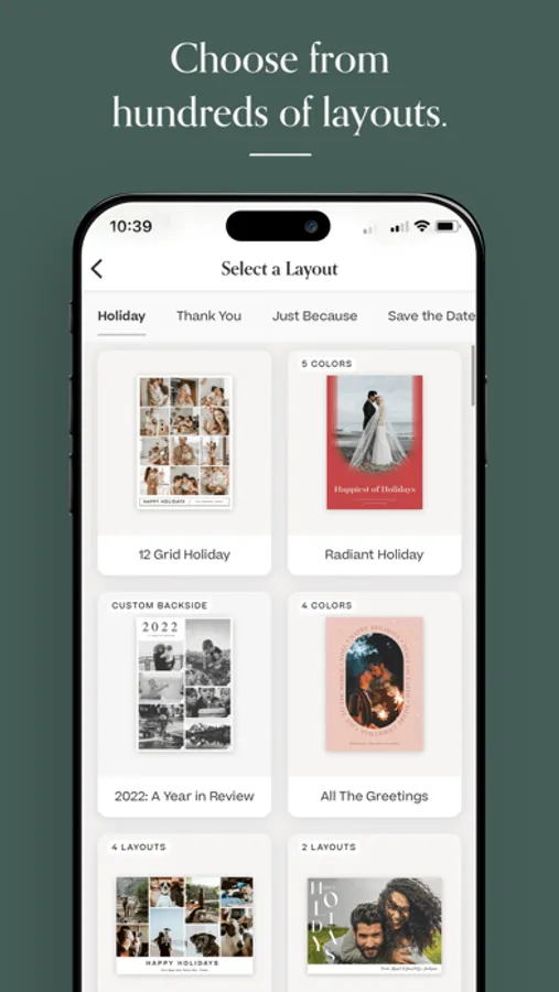 Simply select one of our 50+ beautifully designed card templates, and then customize it with your own photo and message.