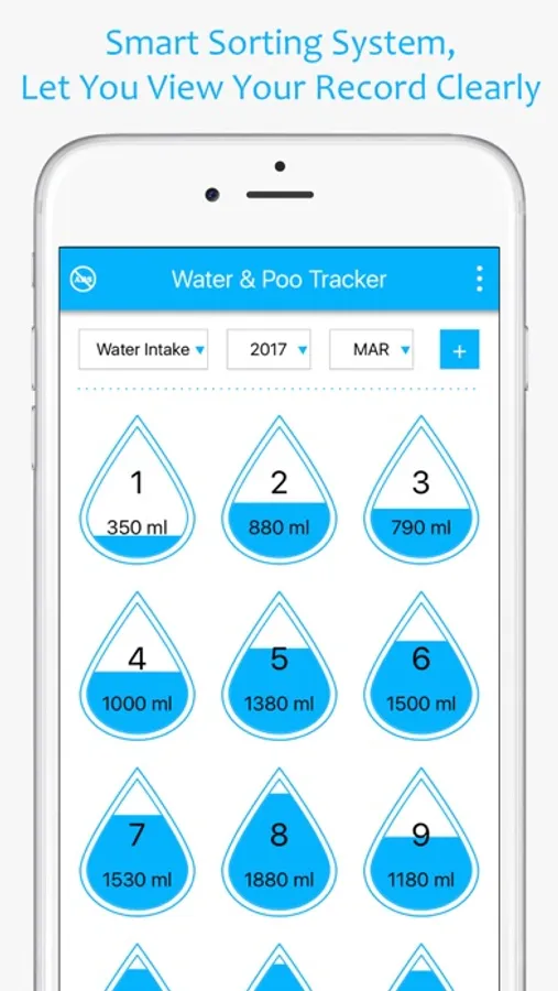 • Smart Sorting System let you view your water intake record and poo records according to month.