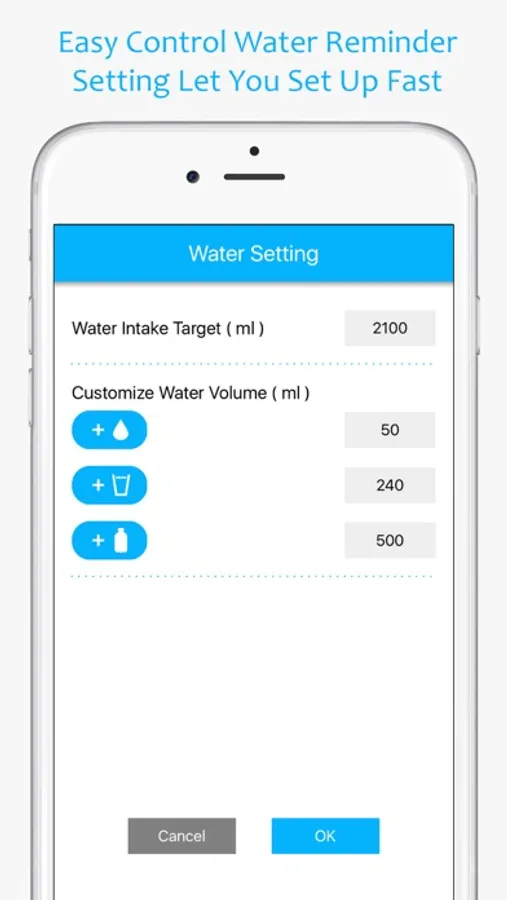 • Provides customize water volume for fast button of adding water intake.
