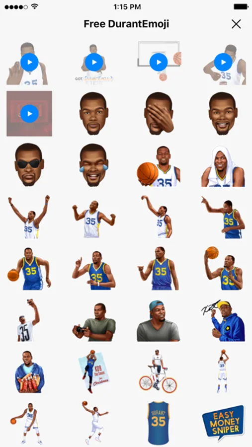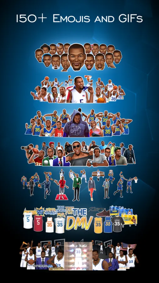 Additional DurantEmoji packs available for purchase include emojis for KD on the home court, KD's personal life, KD playing a road game, as well as KD's superb and exclusive animations!