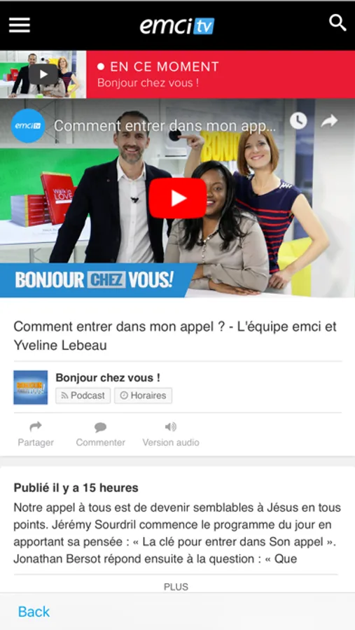 EMCI TV est l'application de la chaîne de télévision chrétienne EMCI TV et du site web emcitv.com, pour apporter le message de la Bible avec des enseignements et des messages pour tous.