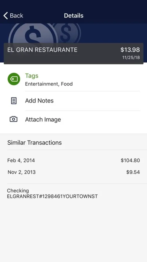 Add Tags, Notes, Images & Geo-Information: By enhancing transactions with custom tags, notes or photos of a receipt or check, you have the ability to stay organized and find exactly what you’re looking for when searching through your finances.