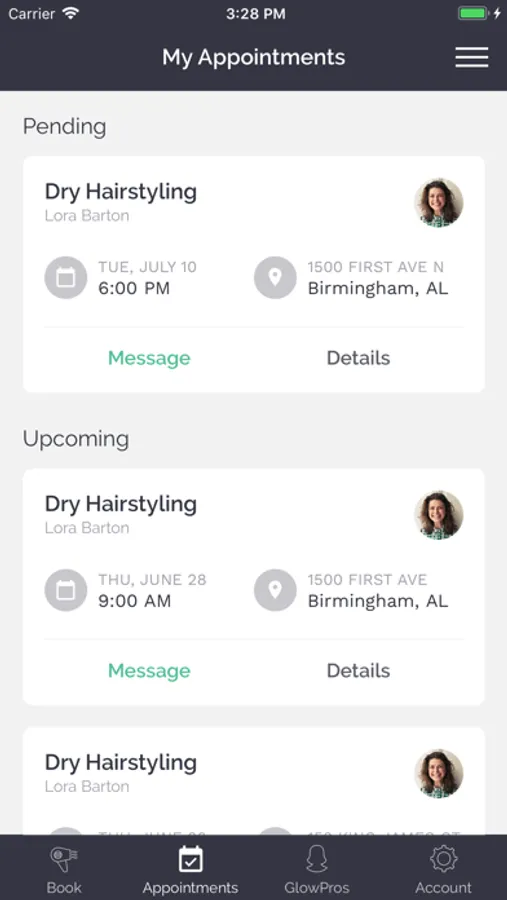 Whether it's a week or an hour before you desire any of our beauty services, let our GlowPro beauty professionals come to you! Glow connects you with our accredited network of GlowPro beauty professionals, to provide beauty services like dry styling, blowouts, makeup applications and spray tanning.