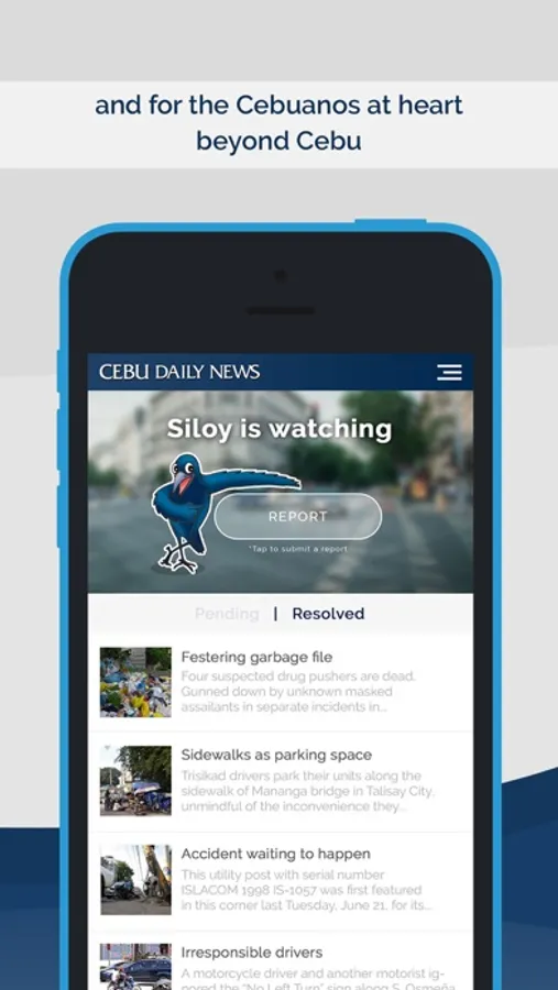 Siloy, the watchful bird, keeps an eye to the reports from citizens and tracks the resolution of these concerns.