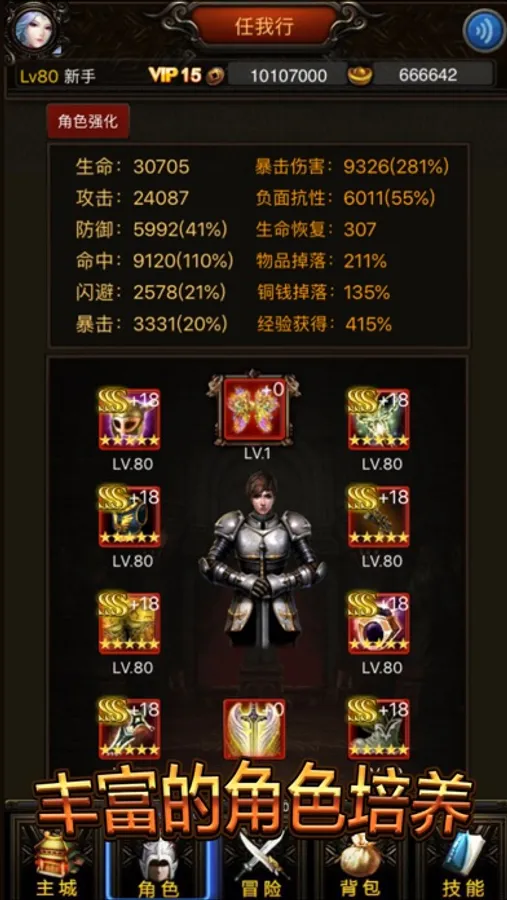 •还有主角换装,角色强化,神器升星,翅膀和特殊装备的升级都附带着运气,还有很多好玩又强大的成就称号等你去解锁。
