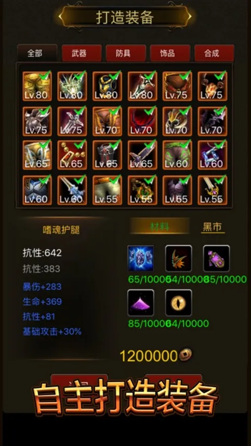 •数百种装备可打造或掉落,还可以重铸,强化和附魔,刷怪还可以随机掉落随机神器