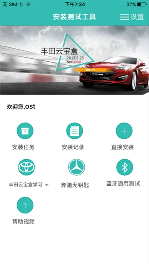 思锐车联网设备安装测试工具。安装人员在完成设备安装后,使用工具进行设备的功能测试以及完善设备和车辆的资料