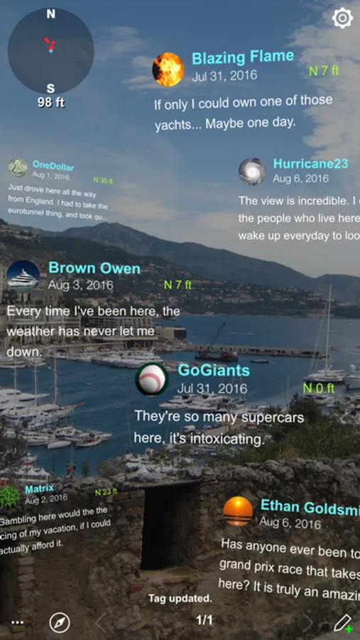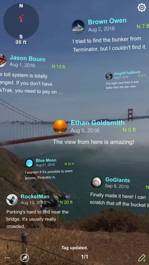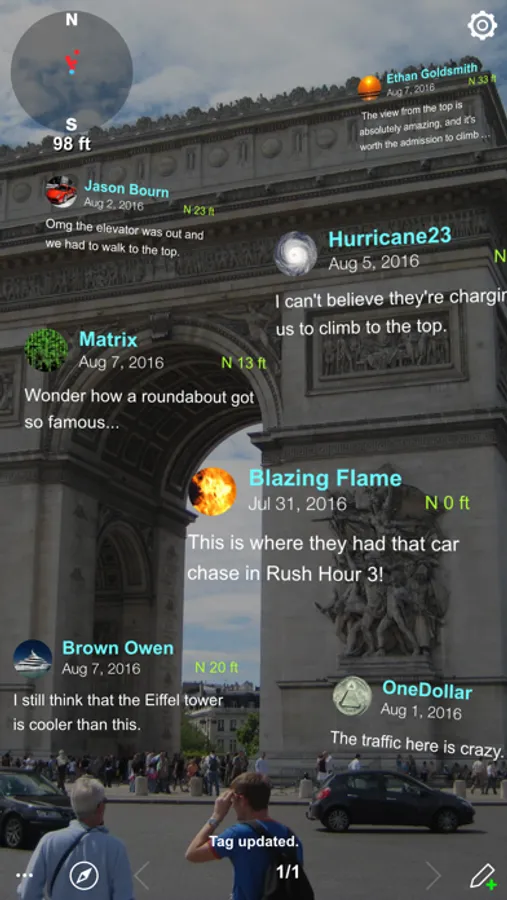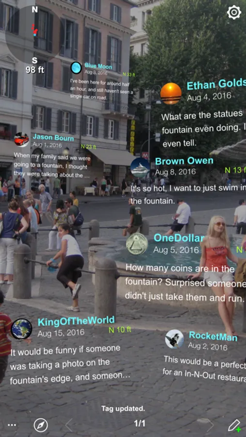 Discover a new dimension around you. Just raise your device, and look at the world through Genesis. You can see tags that people have attached to the space around you, made possible with augmented reality technology.