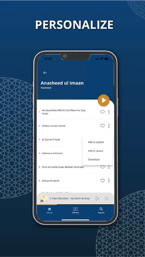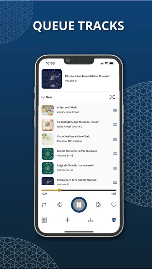 ● Create your own custom queue inside the app to listen to a series of kalaams of your choice in an