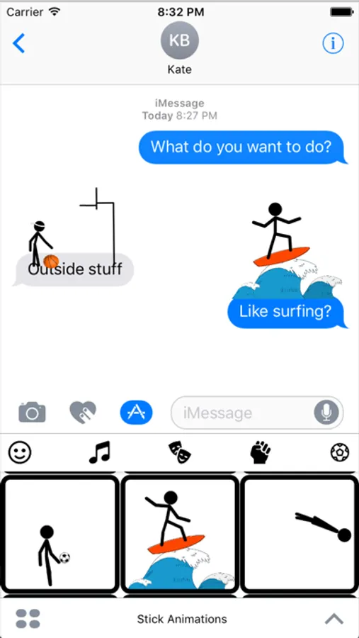 Animated sticker figures transform your texting experience forever. Click and drag to your messages. Expressive animations will deliver your messages across in a more meaningful way - adding more flairs and personal taste, simply fun!