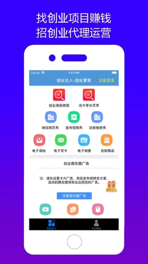 做创业不容易,要找项目,要做好推广营销,让我们的创业达人来帮你,视频水印营销,做图广告图片设计包装,宣传海报制作,推广视频制作等等数十项创业适用的软件功能帮你成就创业达人。