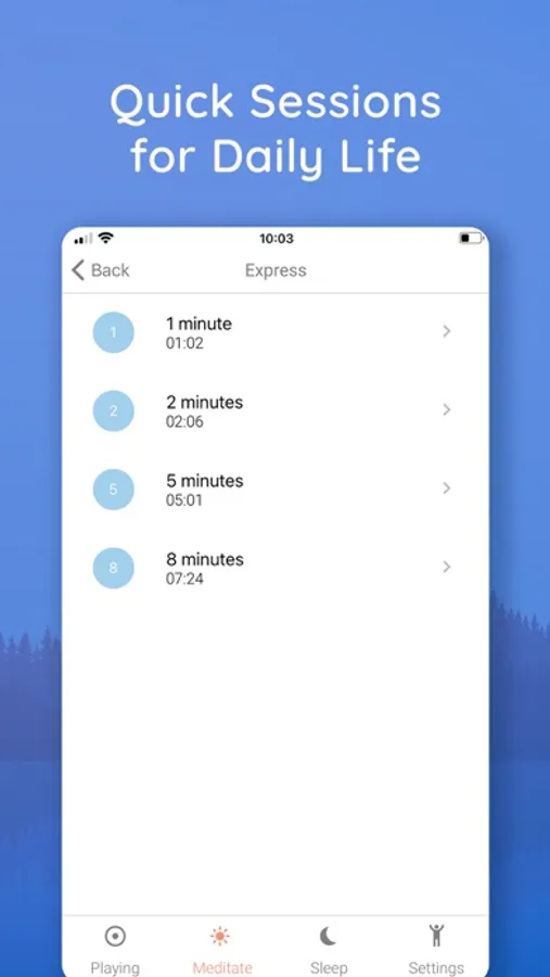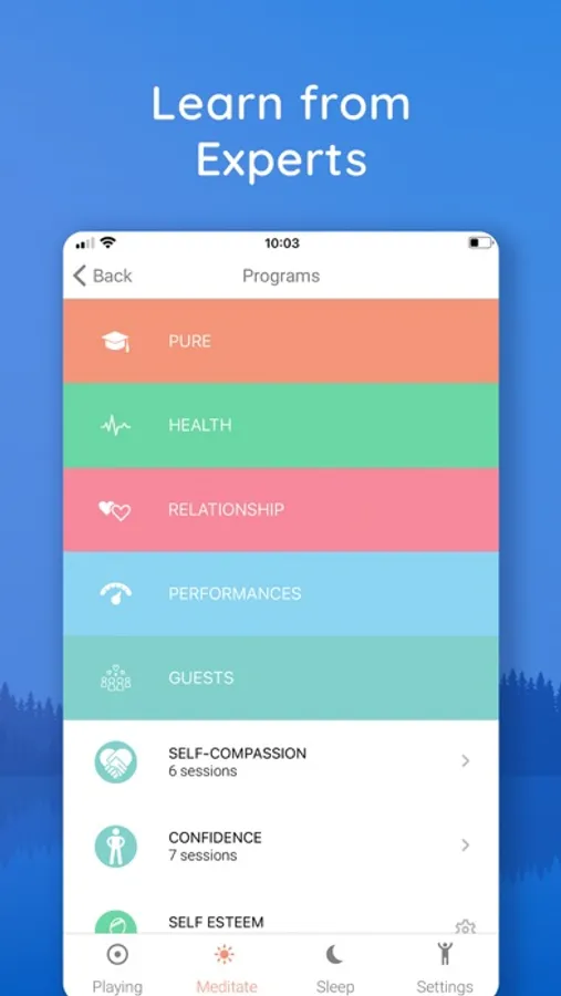 If you choose to continue your meditation experience, you have access to meditation techniques depending on what you are doing, express sessions, or you can choose to meditate in silence through the classic sessions. Sleep, relaxation: discover all the benefits of living in the present moment.