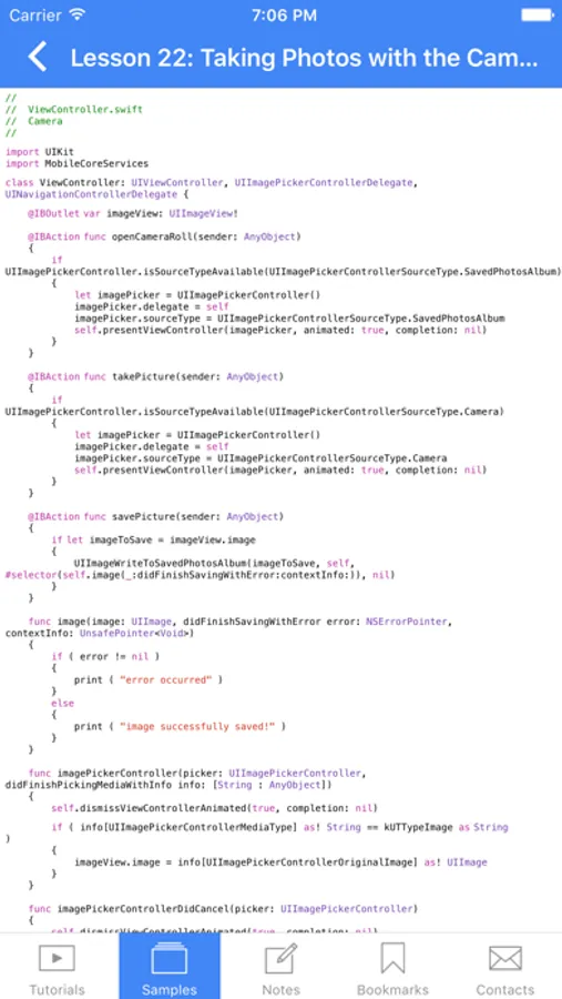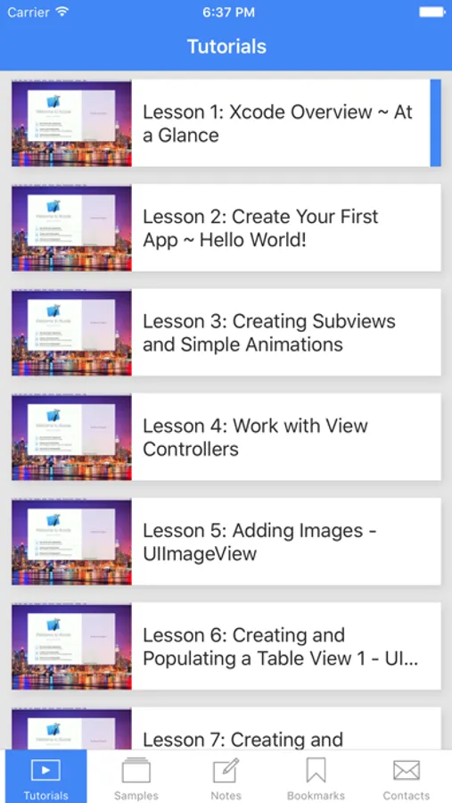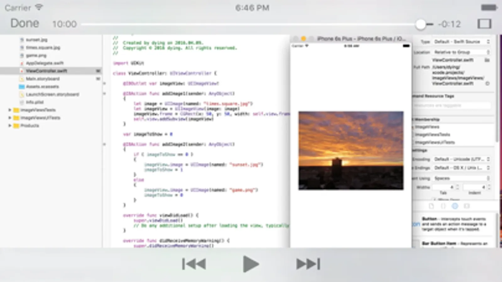 * Video Tutorials - They are made in Full HD resolution and feature native English speakers. These step-by-step tutorials are 5-15 minutes on average, and you can view them in full screen and offline. They support the latest version of Xcode and iOS. The video will automatically resume the playback position from the stopping time of your last session.