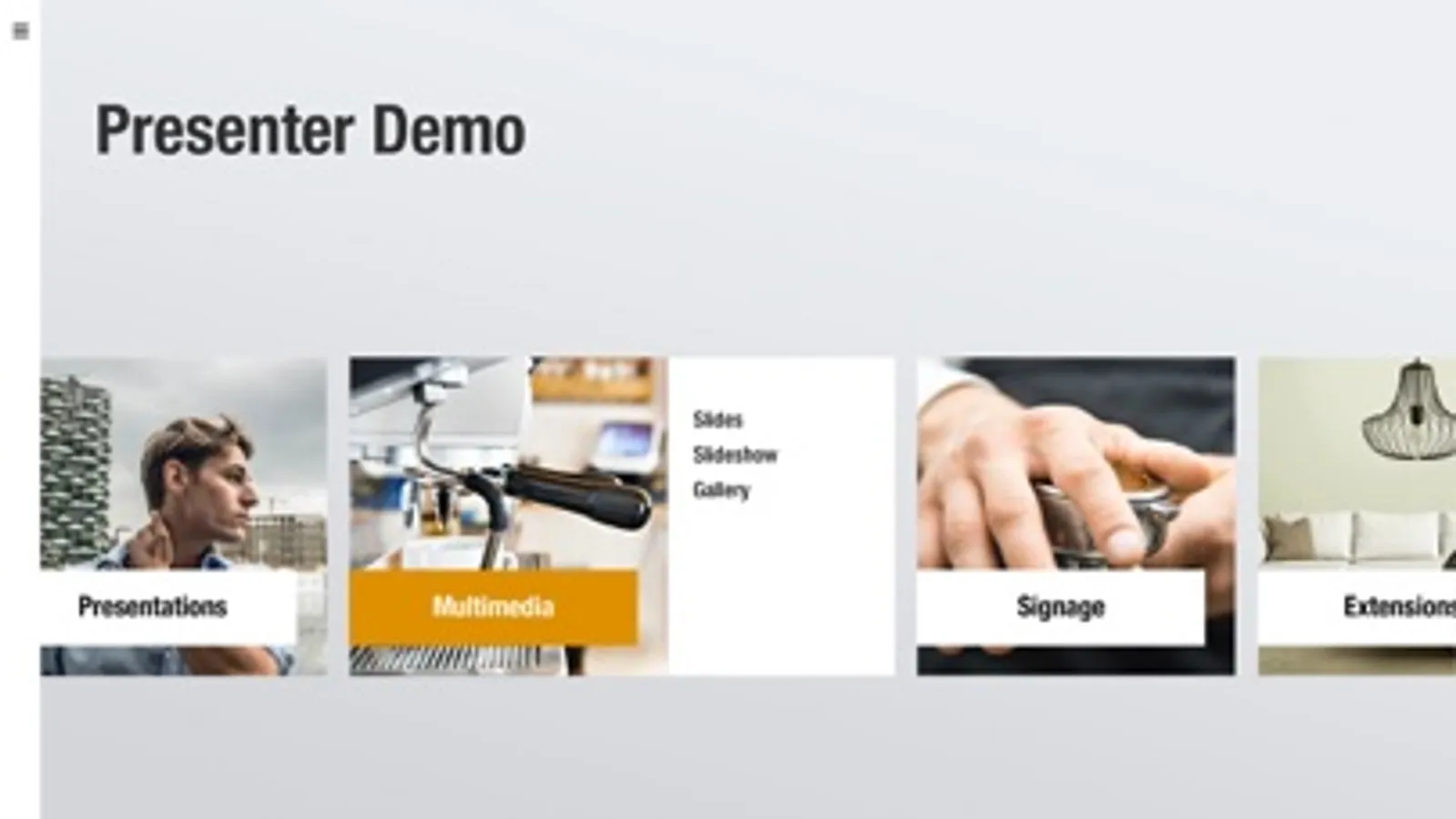 The Touchway MMB Multimedia Browser is a presenter software to create, produce and manage interactive multimedia presentations for sales presentations, info kiosks, presentation apps and concierge terminals. Featuring easy-to-use content management, automated navigation, touch and mouse operation, individual user interface design, seamless content integration and a variety of extensions and touch apps.