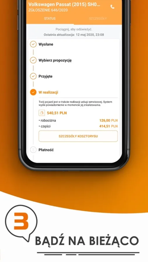 • Po przyjęciu samochodu przez serwis otrzymasz kosztorys do akceptacji, a po wykonaniu usługi serwisowej dokonaj płatności.