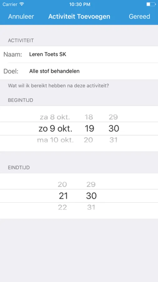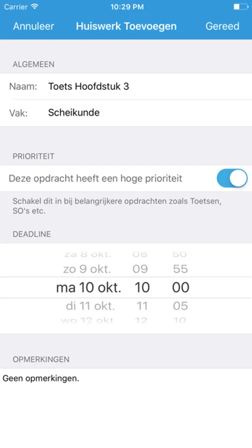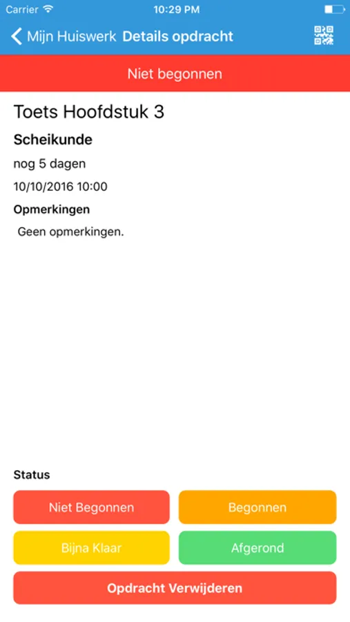 - Markeer huiswerkopdrachten als "Niet begonnen", "Begonnen", "Bijna klaar" en "Afgerond".