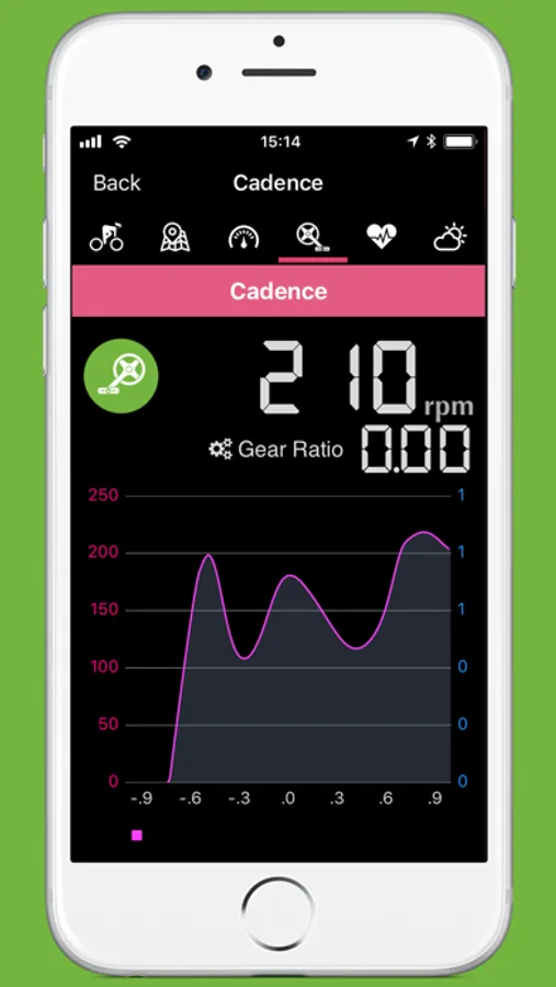 - Graphical charts: current speed, heart rate, cadence, elevation and distance.