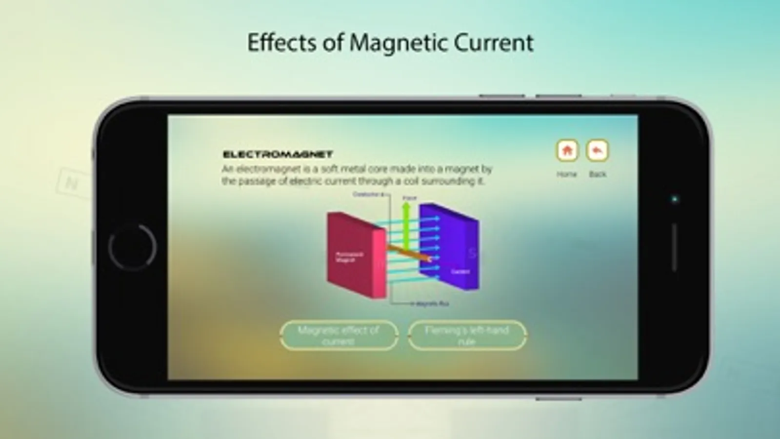 Electromagnetic Forces physics app has been designed for K12 students to describe the process of magnetic effect and magnetic force of current. This app helps students to learn about Fleming’s left-hand rule and describes cathode rays structure in an interactive way. In addition, the electromagnetic Forces app illustrates the uses of Cathode Ray Oscilloscope through 3D animations. Each section is explained in detail with diagrams, graphical representations and animations along with simple text explaining the concept.