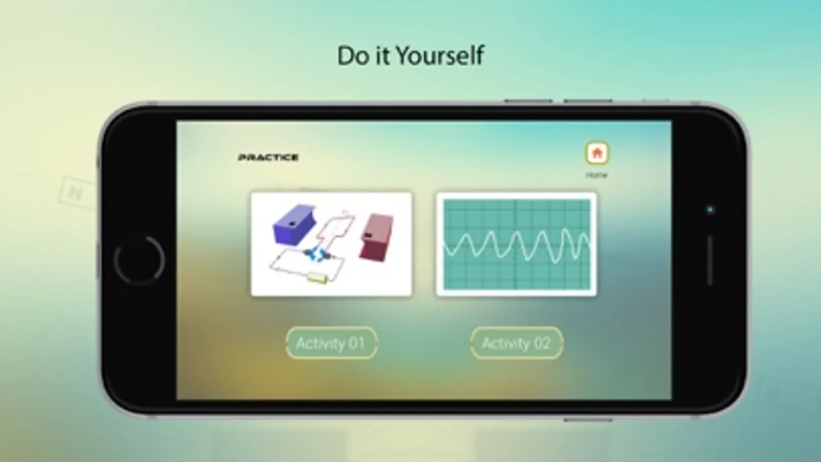 2) Practice - This section helps to practice the working process of electric motor and also observe the variations in sine wave graph with animated 3D experiments.