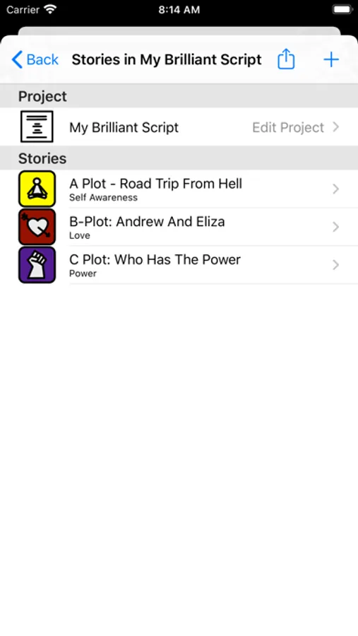 Within the app you can also store your own projects and capture ideas for episodes or subplots that come out of specific themes.