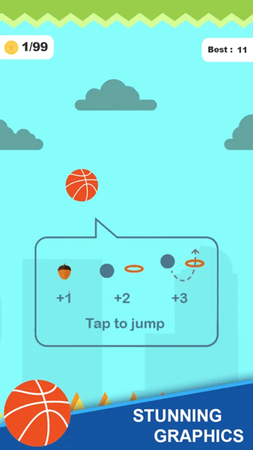 Get the game now and deal with the pressure of time, analysis, observations and play with the basketball. The game is very simple and interesting to play. It is designed for players from all age groups kids, teens and adults. Fly your ball at the right time and avoid the obstacles. Play safe!