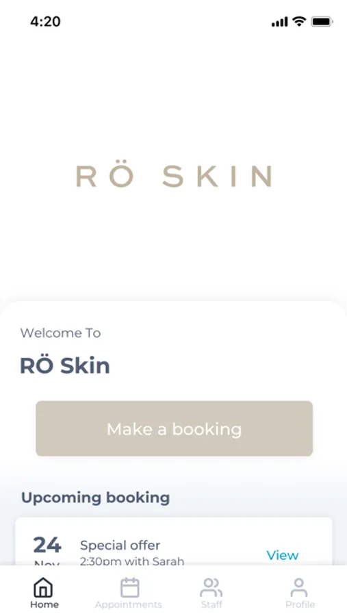 The RÖ Skin app makes booking your appointments and managing your loyalty points even easier. You're just a few taps away from feeling good and looking great!