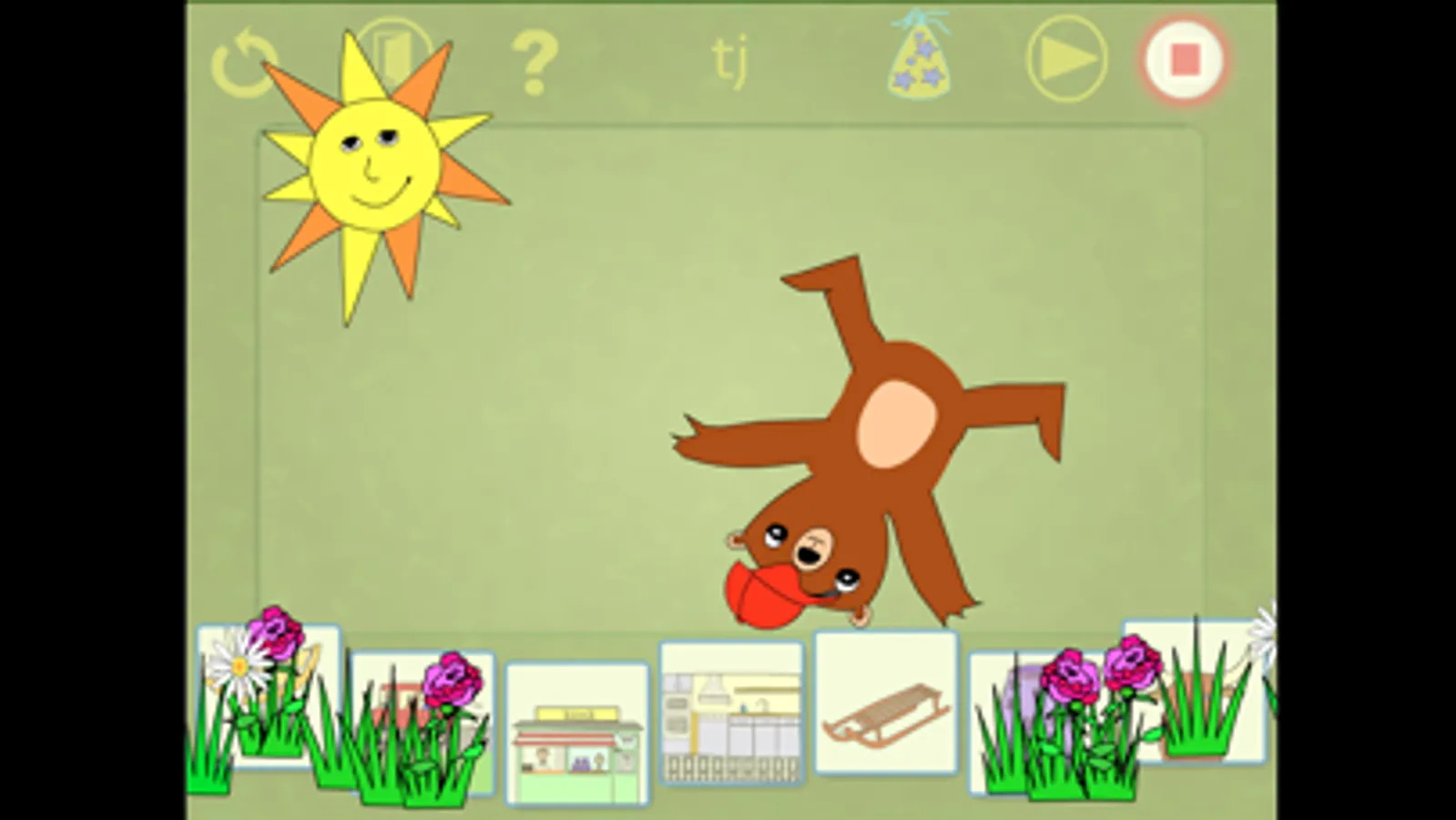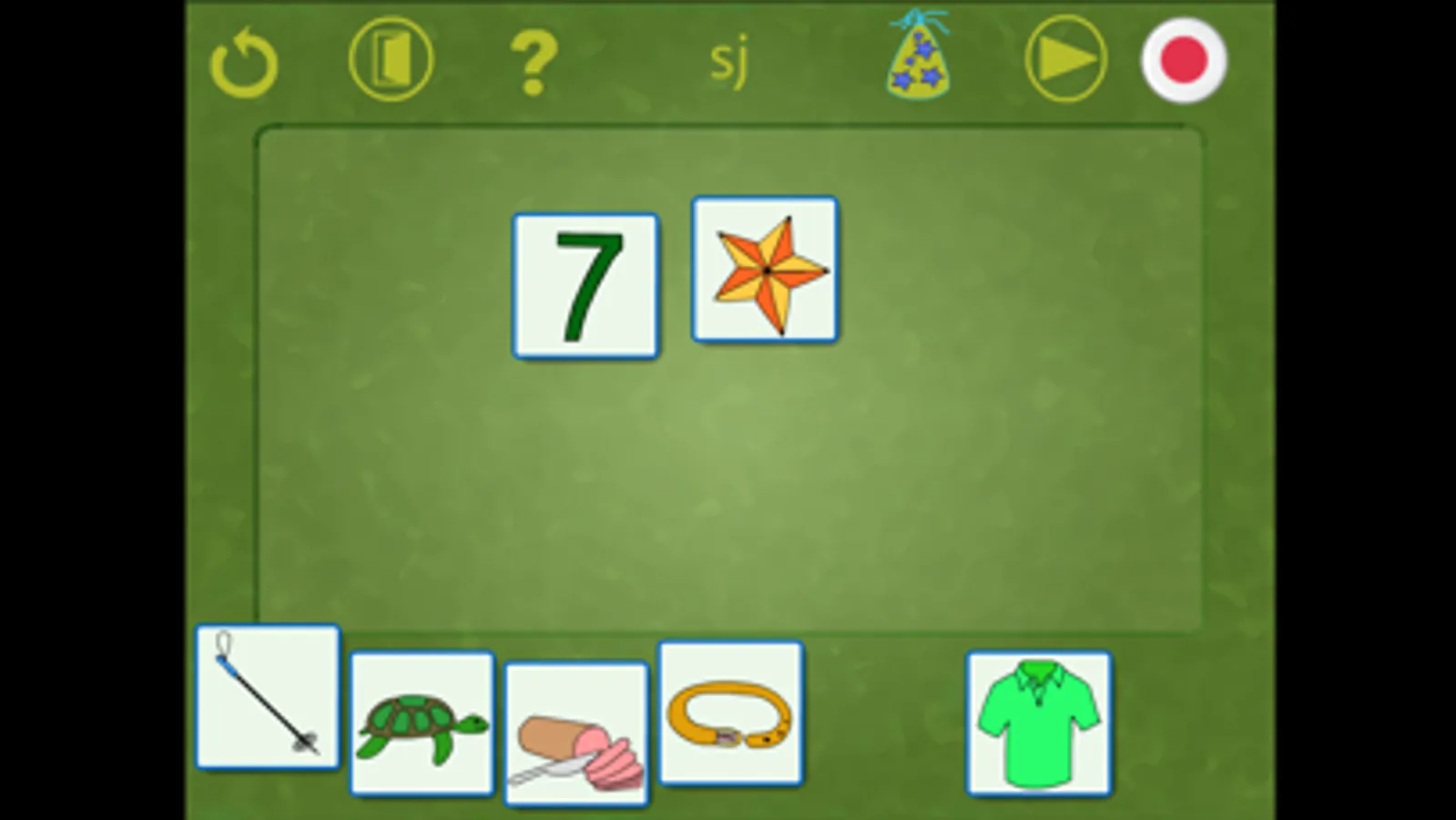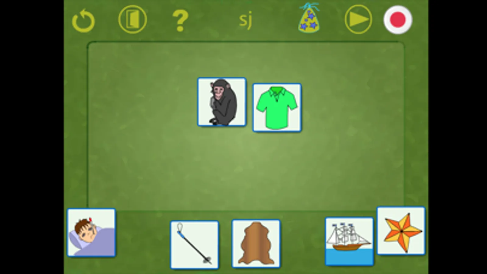 Med hjälp av bildkort med sj-ljudet eller tj-ljudet i får ni leka fritt. Dra och släpp korten på planen i den ordning ni vill prata och berätta om dem. Gör tokiga sammansättningar som: kyckling-kämpa eller choklad-sjunga. Låt fantasin flöda! När ni är klara kan ni spela in via mikrofonen och lyssna tillsammans. Fira genom att trycka på partyhatten.