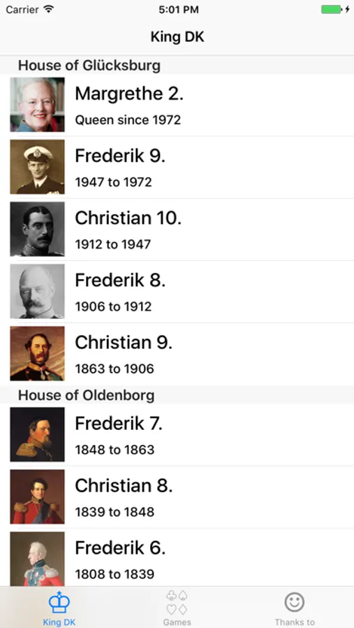 - Quiz and games where you can test your knowledge of the Danish monarchs