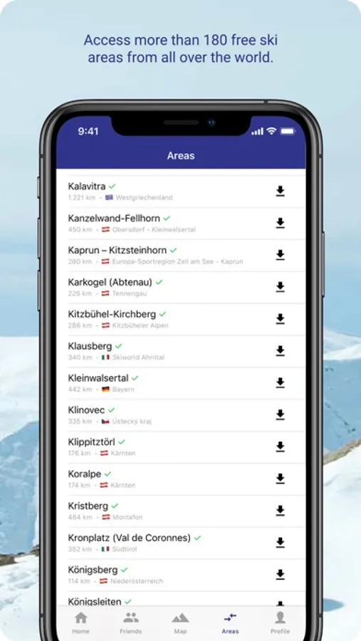 If you are skiing/boarding abroad, you can pin an area’s 3D map on your phone for later use without internet access. For the full experience we recommend using the app with internet connection if possible.