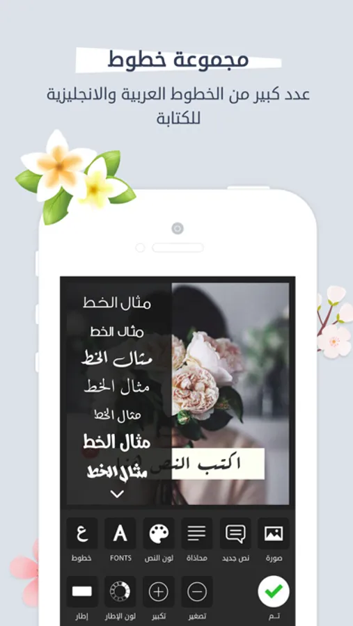 يحتوي التطبيق على عدد جيد من الخطوط العربية و الانجليزية لزخرفة النصوص و تجميلها