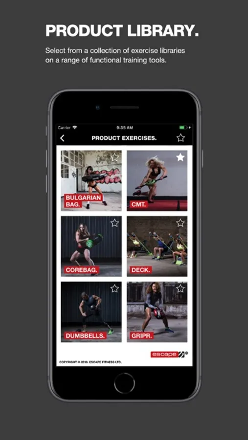 Users can watch individual exercises or entire workout schedules performed by Escape trainers with a wide range of functional tools. The Deck 2.0, Corebags, Sandbags, Multi Grip Medballs, Bulgarian Bags, CMTs, GRIPRs, Plyosoft Boxes, Kettlebells, Bars and Plates, VERTBALLs, Battle Ropes and TIYR are all included. Additional exercise options and workout routines beyond those offered for free can be purchased in-app.