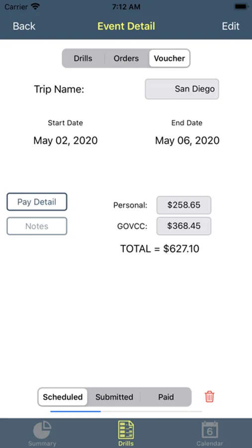 Quickly and easily input and track drills, orders, and DTS vouchers. Include notes to help remember what was accomplished.