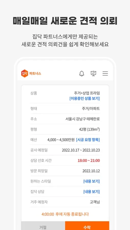 집닥 파트너스 APP을 통해 매일 매일 제공되는