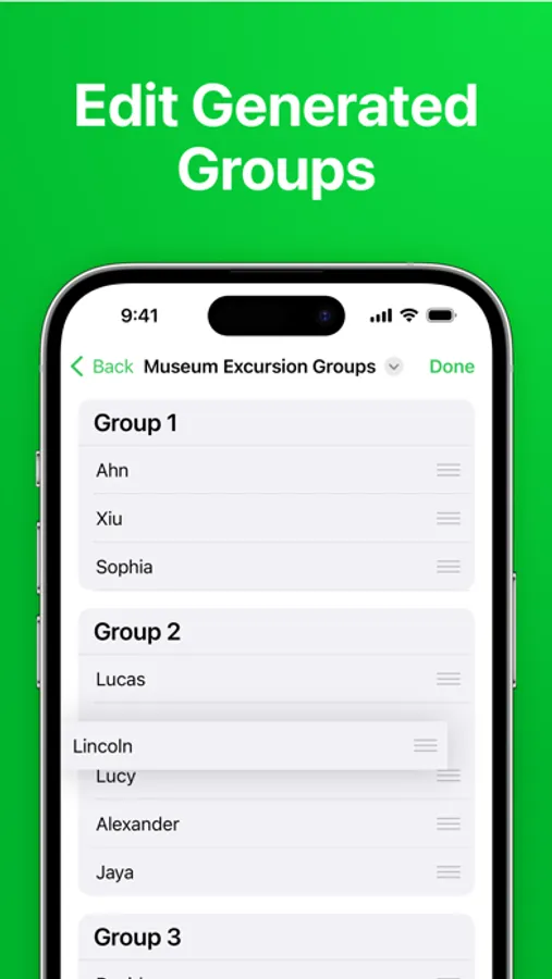 Need to fine tune the generated groups? Easily rearrange the result to achieve a perfect team composition.