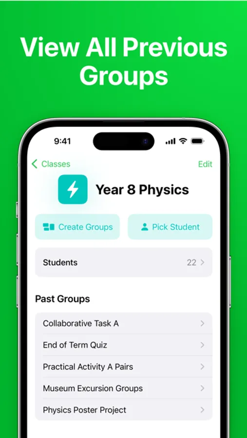 Have certain students who don’t work well together? Simply list these pairs in the app and Groups will handle the rest, with its advanced team-building algorithm.