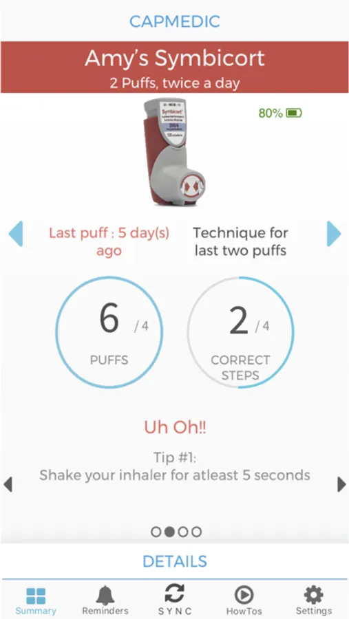 CapMedic app helps you track your inhaler medication, lung function, and symptoms with your connected CapMedic device.