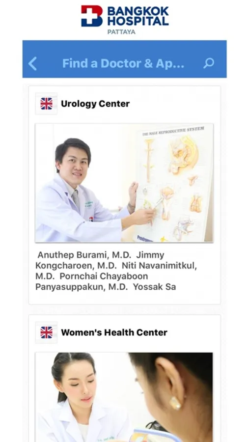• การค้นหารายชื่อแพทย์ เพื่อขอดูประวัติ และทำการนัดหมาย