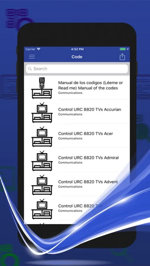 Codes remote controller of your Communication Universal TV this app allows you to quickly select thousands of codes tv manufacturers so you can set your control or (Control) for television. Controlles universal code Communication TV, universal code controlles For Communication TV