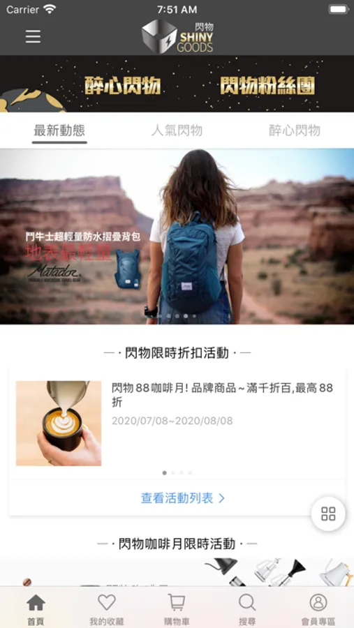 ◆折扣訊息閃速推播,潮流商品全球同步。◆