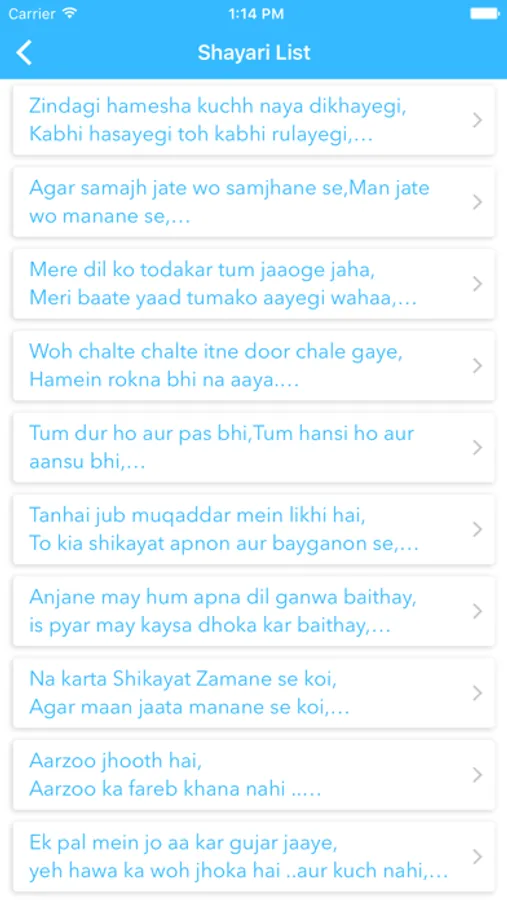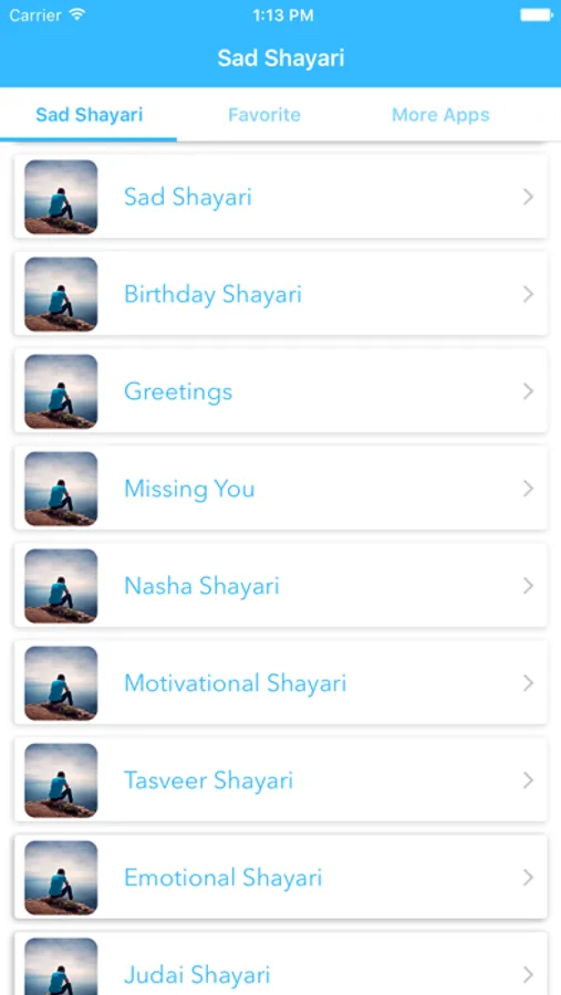Sad Shayari app is a great status application having various categories like Hindi,English and Other.